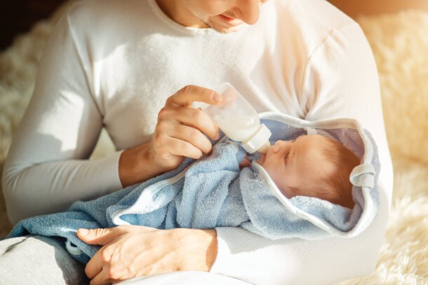 Если питание грудным молоком невозможно, то подбирается качественная смесь. Здесь неуместно использовать обычную смесь. Из-за того, что недоношенные дети в большей степени склонны к аллергии, важно чтобы смесь назначил специалист. Если он обнаружит аллергию на лактозу, то подберет другое питание. В смеси для недоношенных детей повышена энергетическая ценность, увеличено количество белка, жиров и углеводов. В составе есть казеин, пребиотики, нуклеотиды, полинасыщенные жирные кислоты и комплекс витаминов.