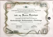 - 2012-2013 гг. – University Milano – Bicocca (Милан, Италия), магистратура по кардиохирургии, кардиологии, кардиоанестезиологии, степень магистр;