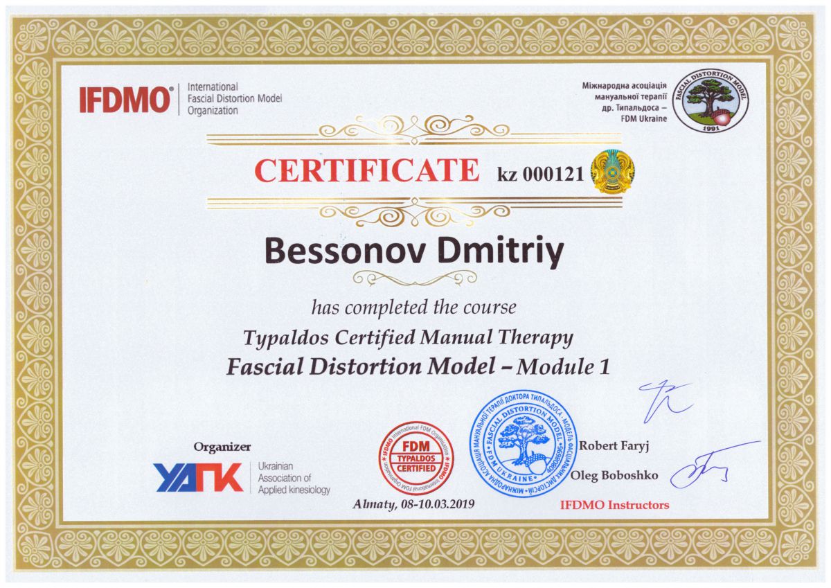 • Доктор Типальдостың мануалды терапия халықаралық қауымдастығы (FDM Украина), семинар №1 IFDMO.